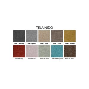 Estructura de madera de pino. Bastidor con cincha elástica. Respaldo reclinable. Asientos y respaldos desenfundables de Poliuretano D-28KG. Asientos deslizantes por puntos. Tapizado de tela de Nido (antimanchas). Patas metálicas.